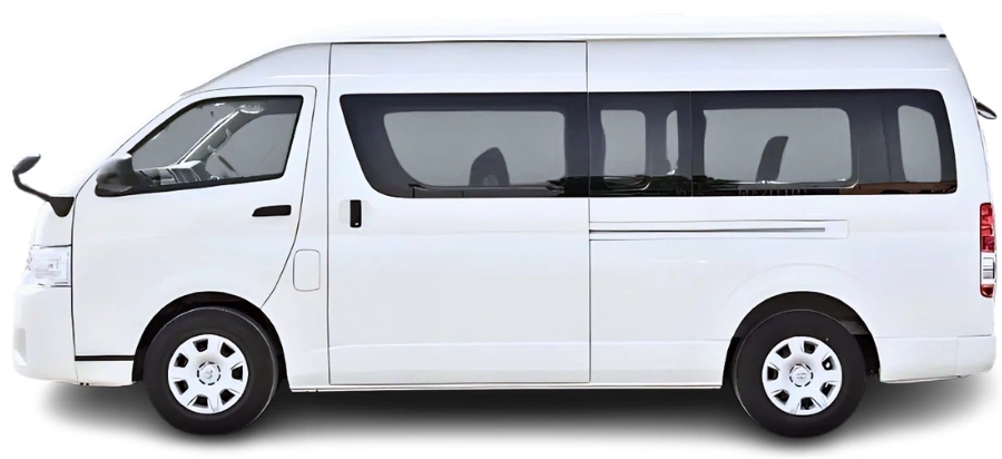 Our 15 seater luxury vans are top of the line Toyota Hiace and Toyota Highroof models. These vans are known for their reliability, spacious interiors, and comfort.